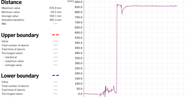 Efento system report – includes readings during installation and data after measurements stabilized at a depth of approximately 8500mm, with a deviation of 1mm. The measurements are repeatable.