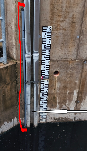 The device equipped with a 15m probe was installed in the pipe marked in red